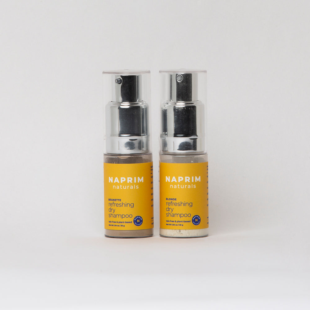 Naprim Naturals Dry Shampoo - A clean, plant-based dry shampoo for quick refreshes between showers. Safe for postpartum hormones and sensitive scalps.
