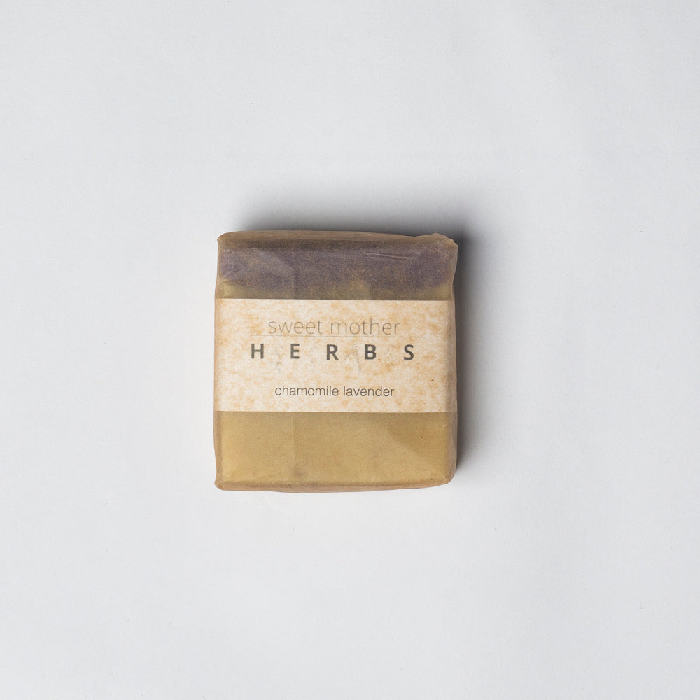 Sweet Mother Herbs Lavender Chamomile Soap - Artisan handcrafted vegan soap made with oats, lavender and a chamomile infusion. The creamy texture and rich lather gently cleanses to help remove dead skin cells and retain the skin’s natural moisture, leaving it feeling soft and nourished.